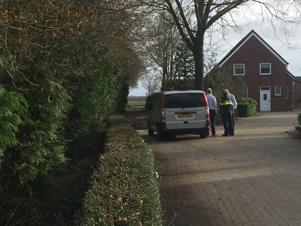 Het lichaam is gevonden in een sloot op het terrein van een plaatselijke boer. Agenten doen onderzoek op de plek waar het lichaam is gevonden.